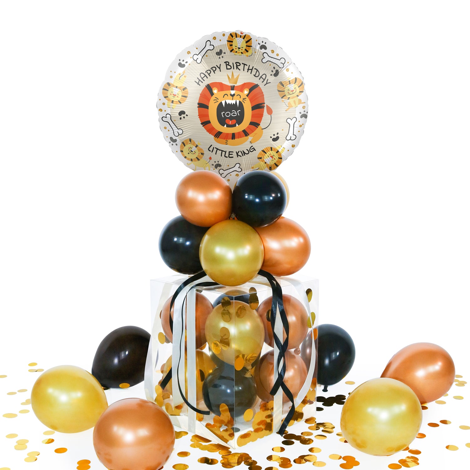 Fertig aufgebaute Geschenkboxen mit Ballons – du kannst die Boxen komplett selber gestalten