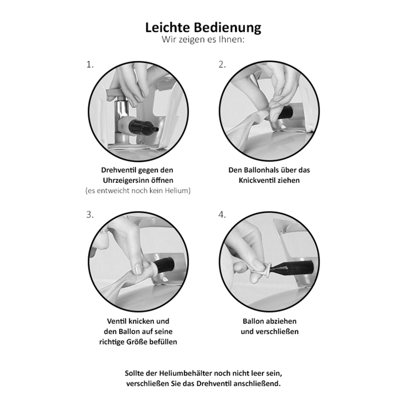 • Helium nicht einatmen – Gefahr von Bewusstlosigkeit und gesundheitlichen Schäden.